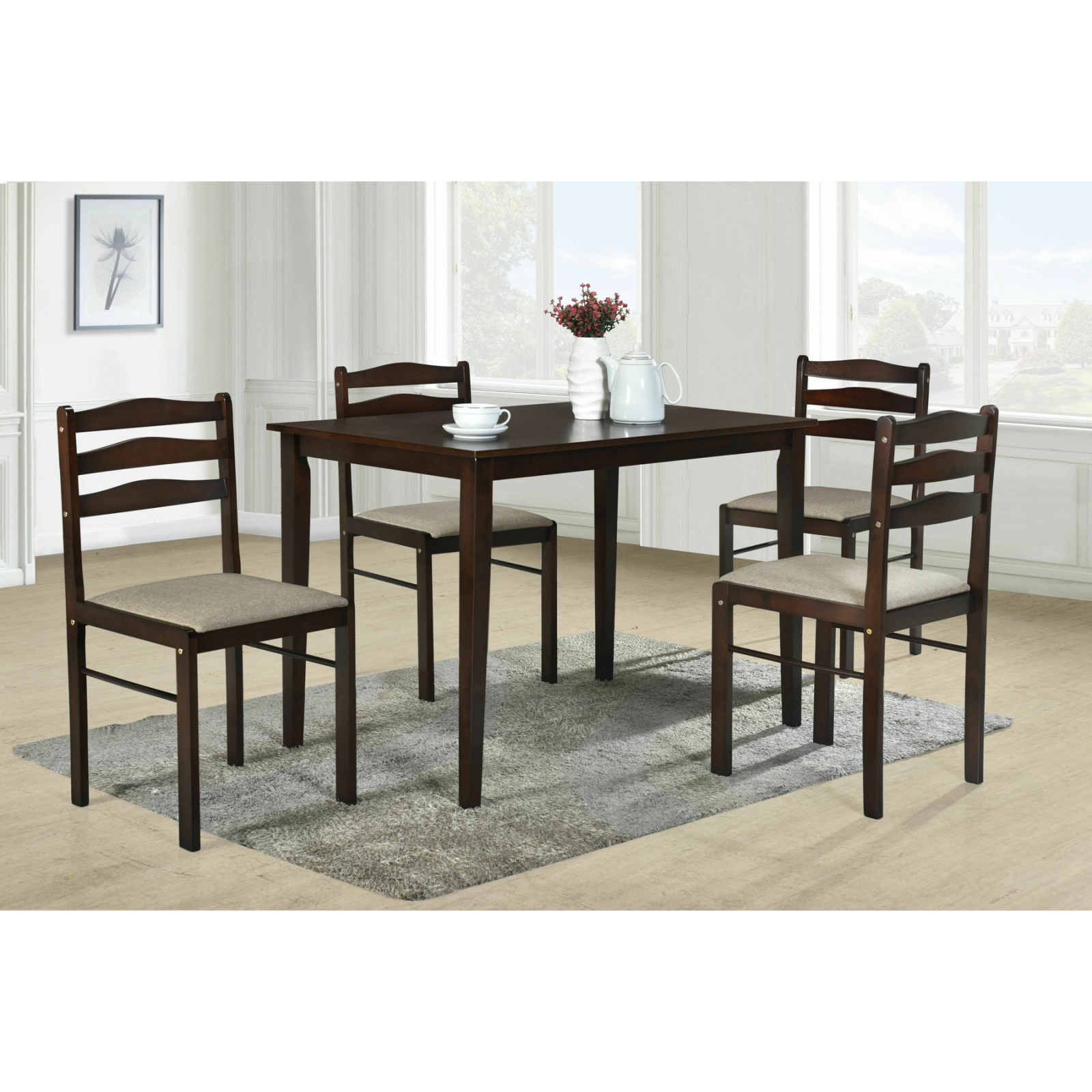 Datorita simplitatii, elegantei si dimensiunilor reduse, setul de masa cu 4 scaune Aris, adauga un plus de finete, completand amenajarea dorita.